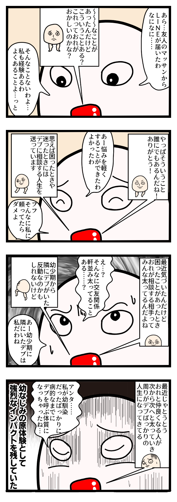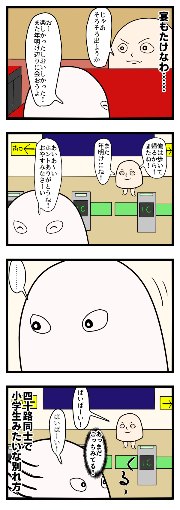 2022年10月26日 40歳の別れ マッサンは地元に住んでいるのですが、私も別に遠くに住んでいるわけではなく、なんなら電車で4駅しか離れていないのですが、コロナの関係でなかなか会えない日が続いていました。こうやって久しぶりに会うと、長年友達でいてくれる人のありがたさが改めて身に沁みますね。これからはもう少し頻繁に遊びたいな。マッサンとの狂った思い出は枚挙に暇がないので、また過去の話を描くときにでも登場してもらいます。
